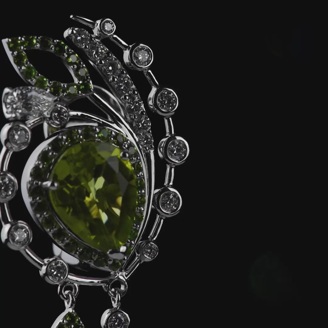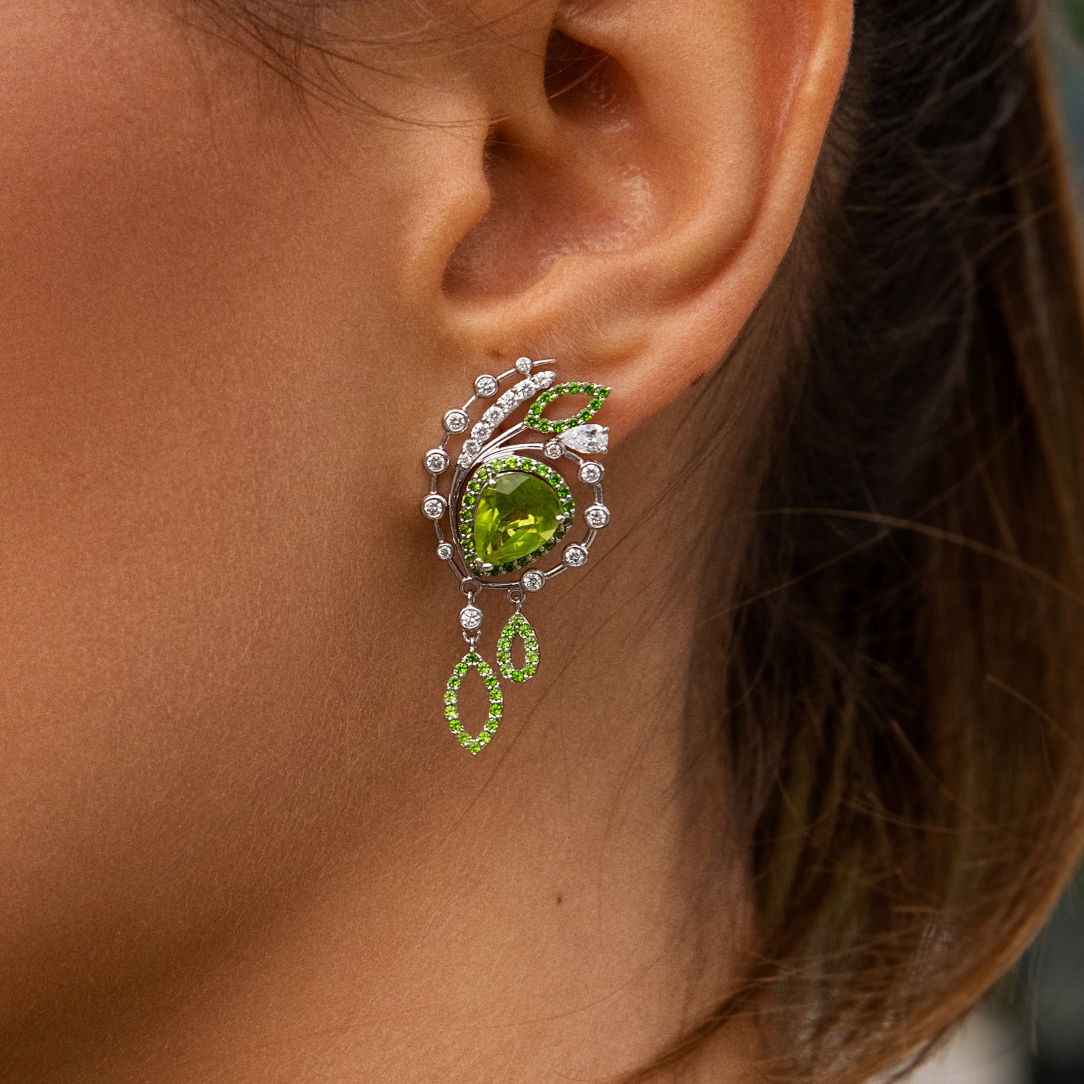 هذه الأقراط المصنوعة من الذهب الأبيض والمرصعة بالزبرجد والديوبتاز والماس، هي مزيج مثالي بين الطبيعة والشخصية. يضفي الزبرجد طاقةً وإشراقاً، ويساعدك الديوبتاز على التواصل مع ذاتك، بينما يضيف الماس لمسةً من البريق والثقة.