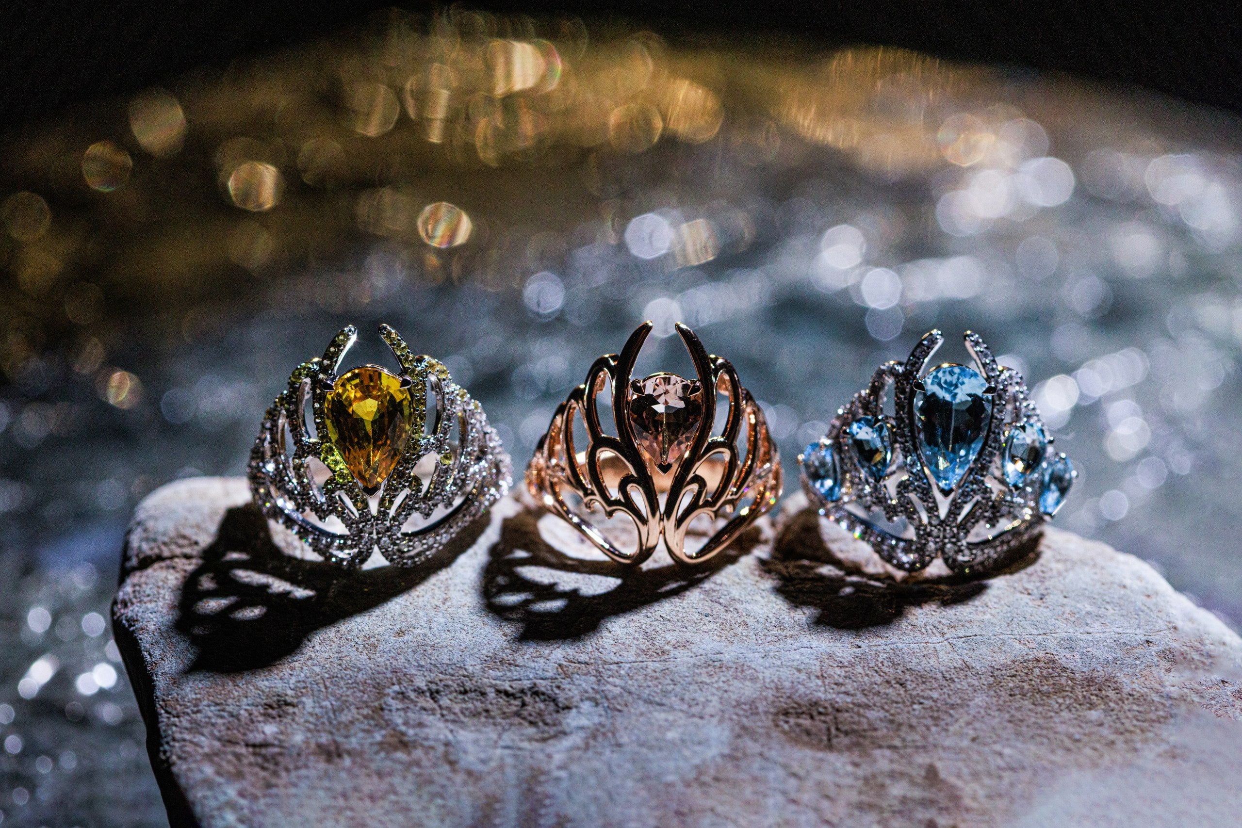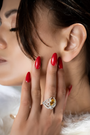 تجاوزي شكوككِ واحتضني قوتكِ الداخلية. خاتم من مجموعة "أجنحة الحرية" - يتميز بالياقوت والألماس بتصميم رائع يعكس حريتكِ وانسجامكِ الداخلي.