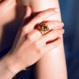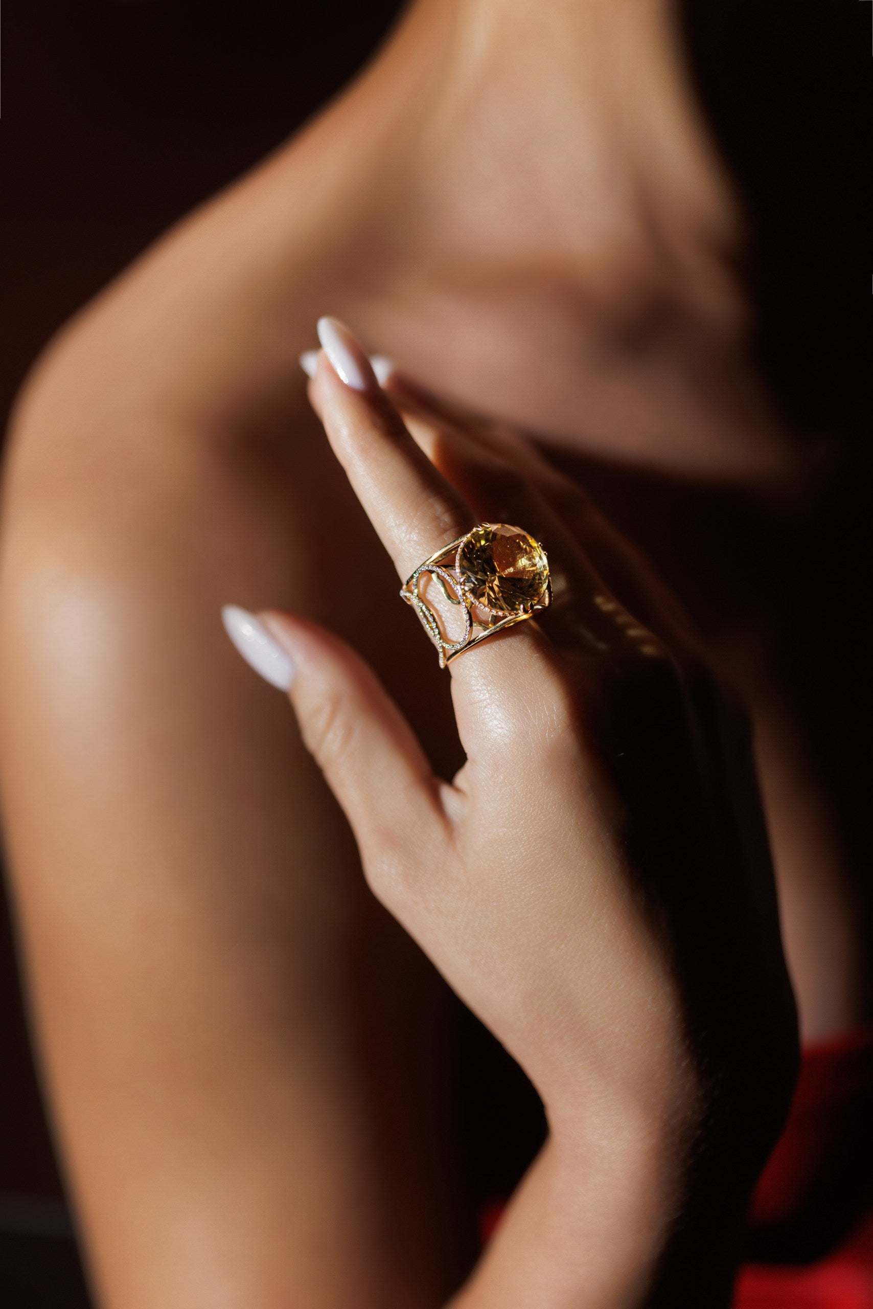 أظهري إشراقة قوتكِ الداخلية مع خاتم "ذا سانشاين" من سانخارا. صُنع هذا الخاتم الرائع من الذهب الأصفر، ويتميز بتلاعب ساحر للضوء على حواف حجر السترين، مُكمّلاً ببريق الألماس. مستوحى من المرأة الجريئة التي تُجسّد عجائب الدنيا، تُذكّرنا درجات اللون الأصفر الرملي الدافئة بالصحراء الشاسعة والشمس الحارقة. وكما هو الحال مع رشفة منعشة من الماء الصافي في حرارة الصيف، يُعدّ هذا الخاتم تكريمًا للجمال والقوة والصمود.