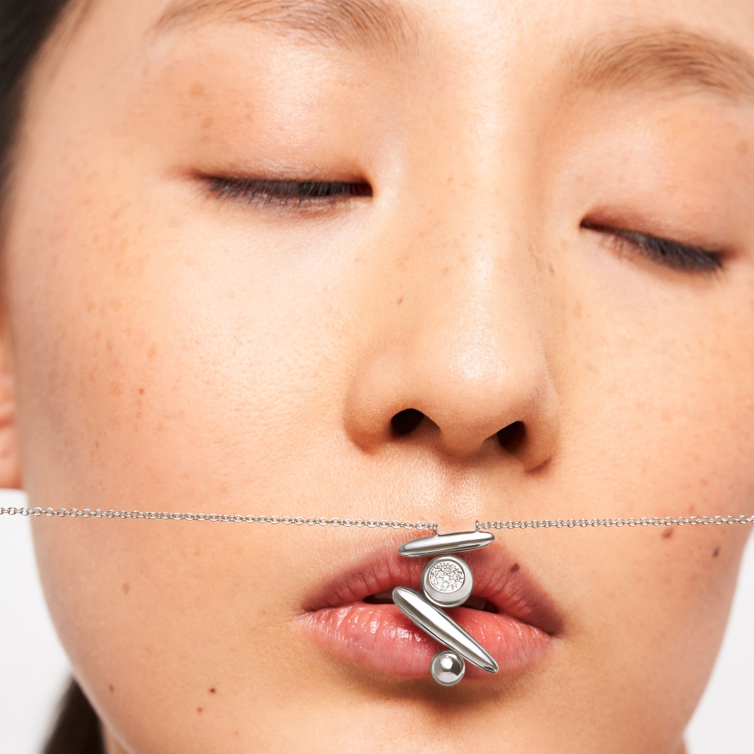Flow Pause Return Necklace, White Gold, Diamonds