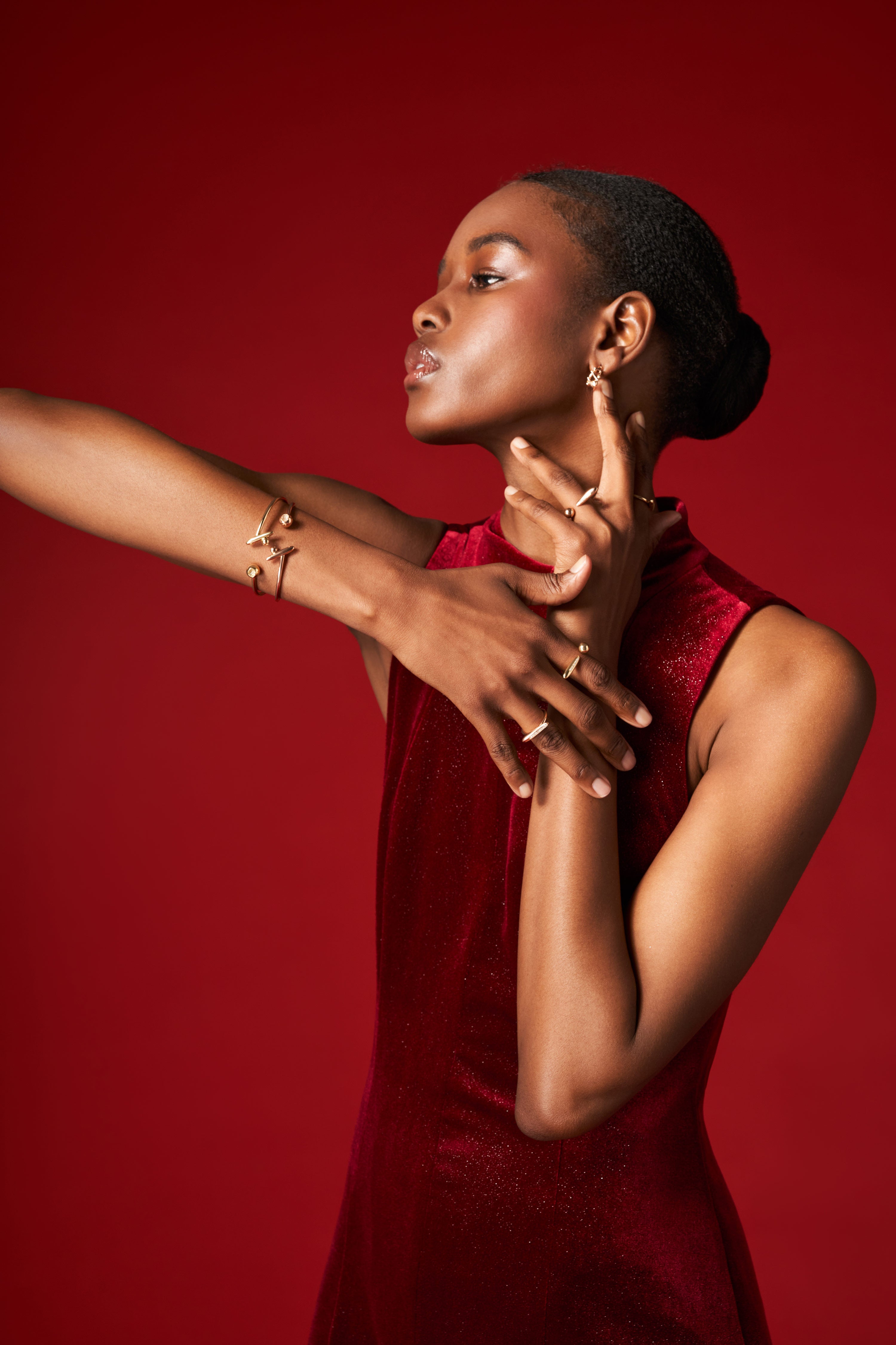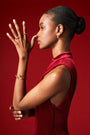 Light on the body, strong in intention — a modern talisman. An intimate reminder you can wear, not just say. A smooth arc that hugs the wrist with ease. In 18K gold, polished to a quiet glow.
