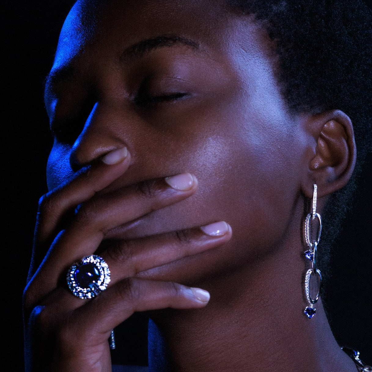 At the heart of the “Soaring Elegance” collection — tanzanite earrings illuminated with fine diamonds, capturing the graceful motion of wings in ascent. Each piece reflects your unique light, honoring your inner strength and reminding you of the freedom, elegance, and quiet power that live within you.